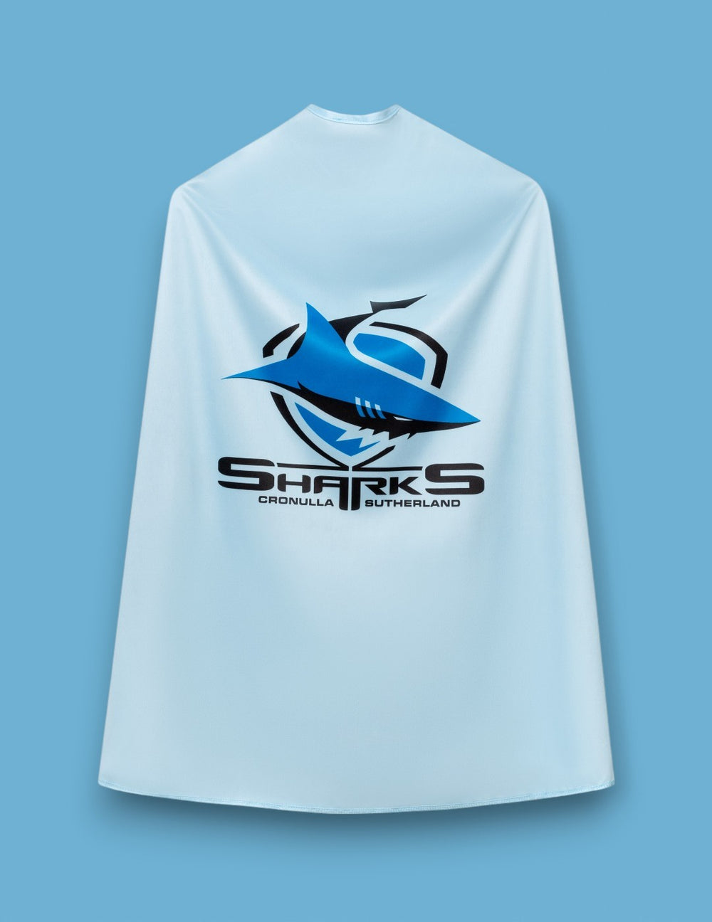 The Cronulla Sharks cape is the ultimate addition to any young supporter's wardrobe. Whether they're cheering from the sidelines or dreaming of being the next big star, they'll feel like a true NRL hero in this cape.