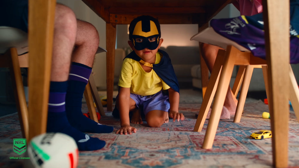 Let your young Storm fans channel their inner Storm Man with this Melbourne Storm NRL mask by Mini Mascot. Officially licensed by the NRL and designed for passionate kids who live for game days, it’s the perfect accessory to show off their team pride.