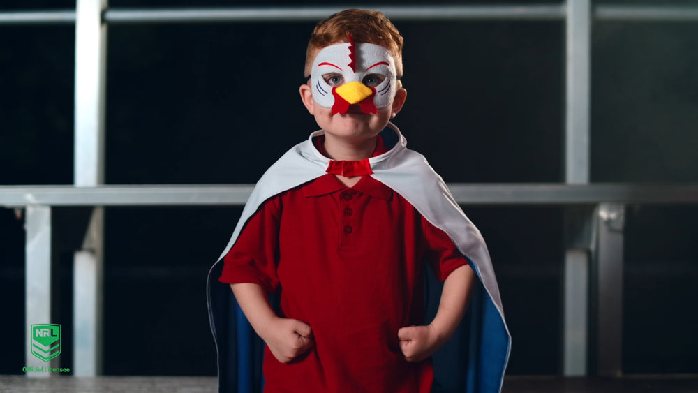 This officially licensed NRL merch is designed for the crazy chooks out there. Made for game days at the stadium or at home, this two-piece mask and cape set will have you looking the part.